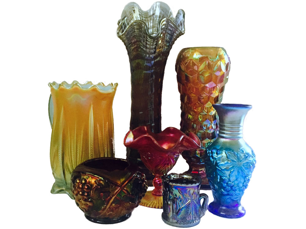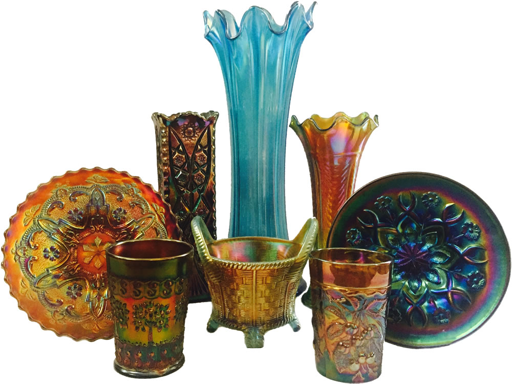 Welcome to Sage Carnival Glass for Sale. Our glass has been collected by family members over the past fifty years. Carnival Glass is our first love but we also sell Iridescent Stretch Glass, Vaseline Glass, Jewelry, and Seasonal items. Carnival Glass made in the Classic Era (circa 1905-1930) includes the five main U.S. manufacturers: Northwood, Fenton, Millersburg, Imperial, and Dugan, plus pieces from the lesser known U.S. manufacturers and various manufactures in Europe, South America, Mexico, Australia, and India.
